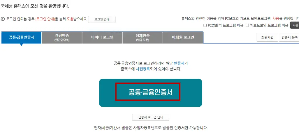 2단계 : 홈택스 로그인