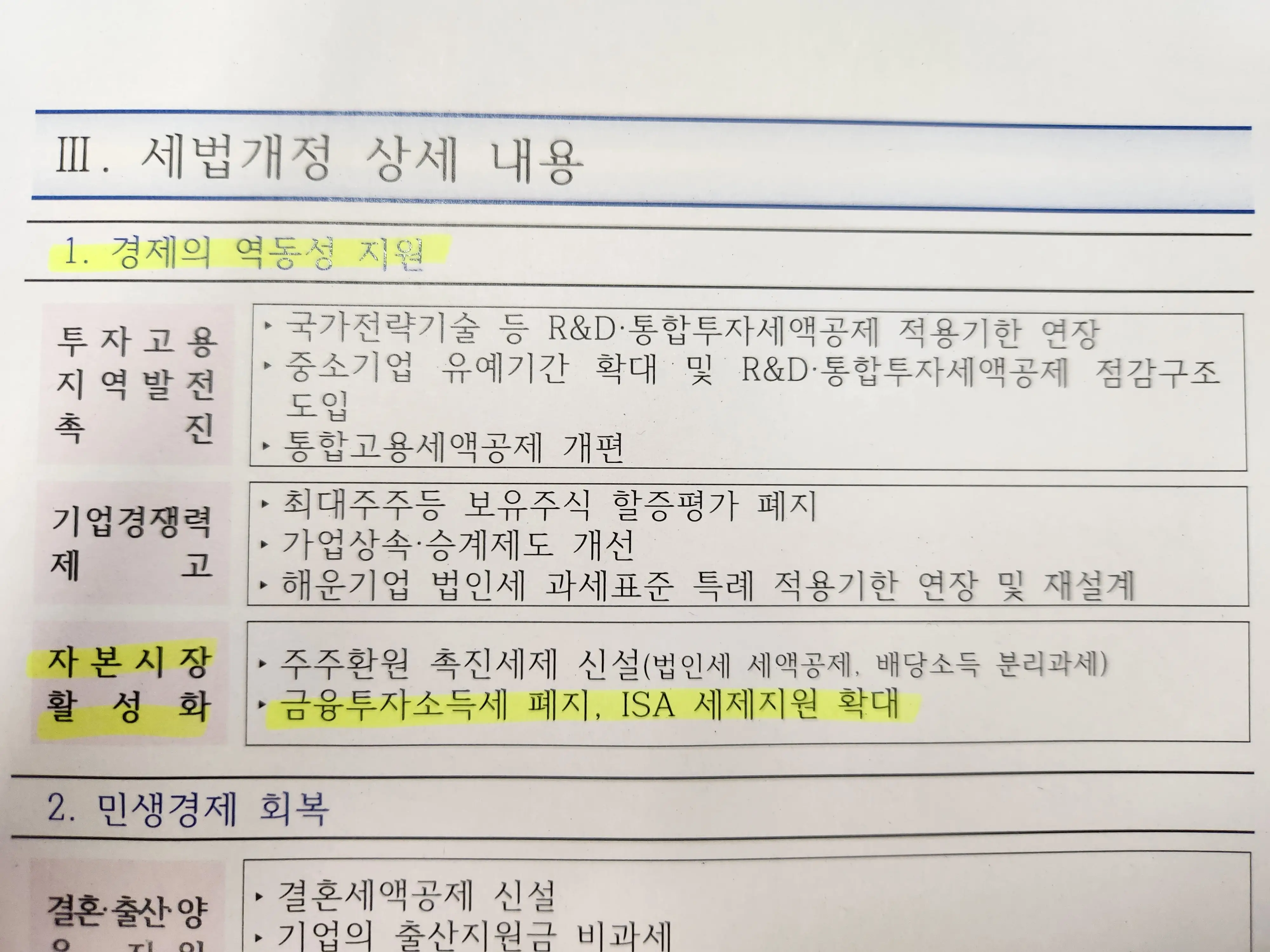 그래서 정부는 자본시장 선진화를 위해 금투세를 아예 폐지하겠다고 하였고, 이것이 '24년 세법 개정안에 명시된 것이다. 만약 이 개정안대로 금투세가 폐지되게 되면, 투자자들은 세금 분제로부터 보다 자유로워질 전망이다.