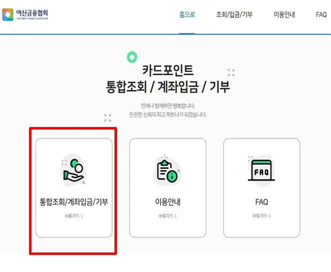 2단계 : '통합조회/계좌입금/기부' 메뉴를 클릭한다.
