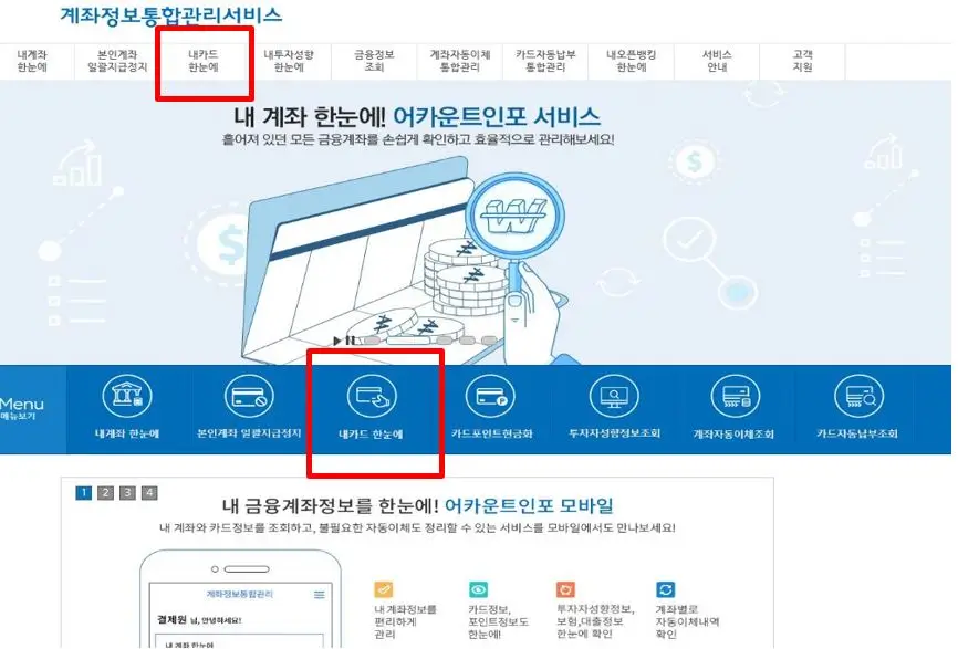 2단계 : '내 카드 한눈에' 메뉴를 클릭한다.