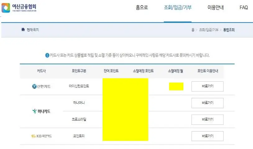 4단계 : 조회 결과를 통해 카드사별 포인트 잔액과 유효기간을 확인한다.